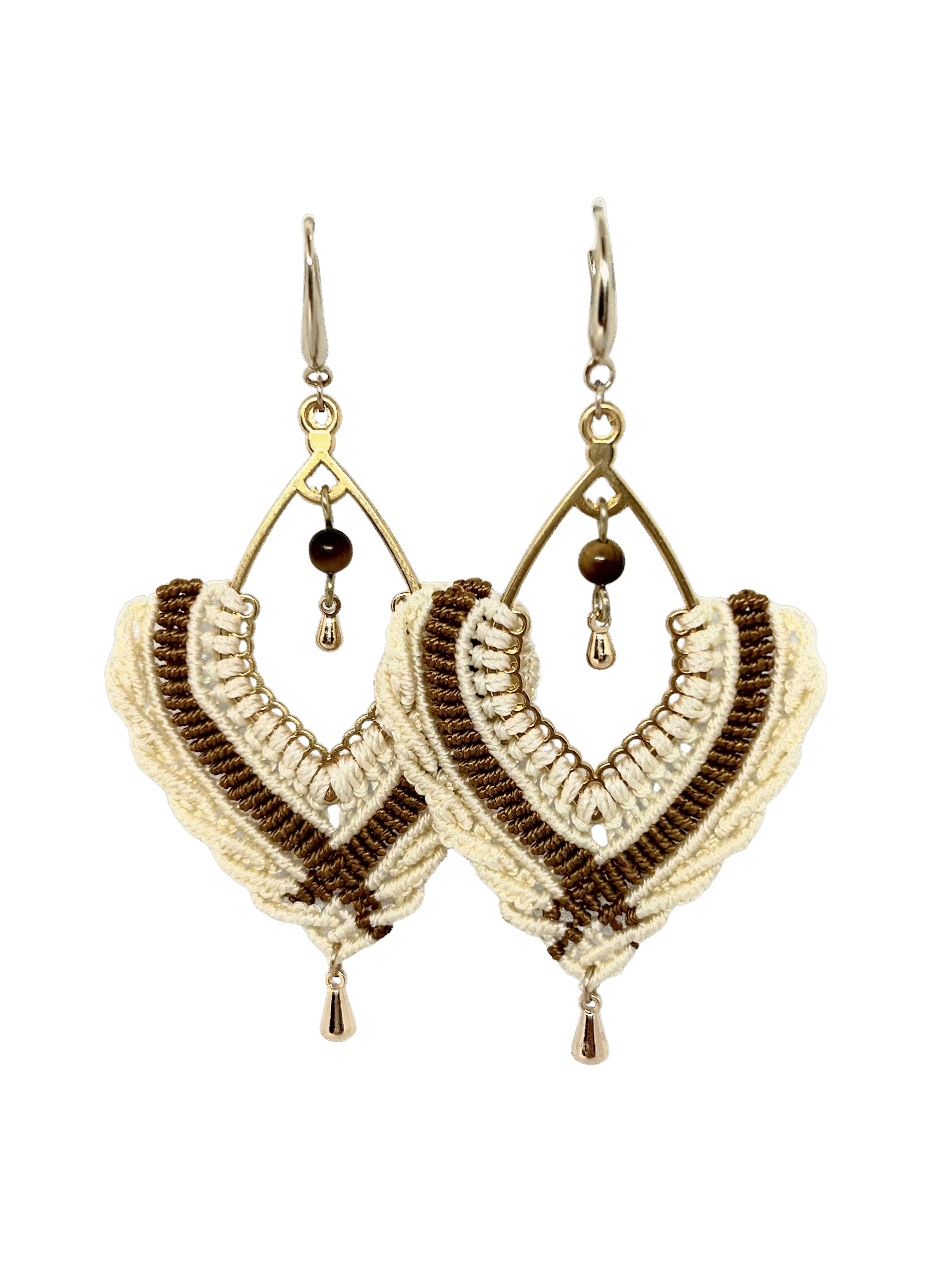 Ainueksemplarist käsitööna mikromakramee stiilis valminud ehe kaunistab kandjat, kaalub vähe ja näeb välja eriline ning elegantne.